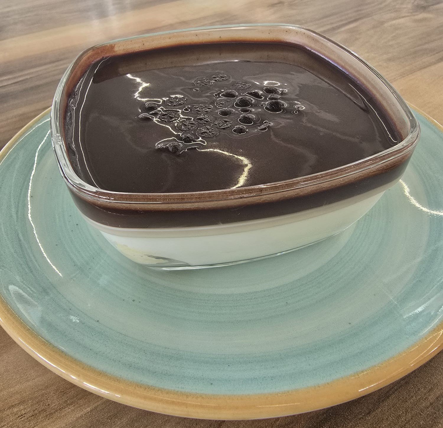 Kedi Dili & Muhallebi üzerinde çikolata sos ve damla çikolata ile